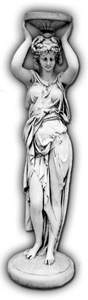 Бетонная скульптура "Девушка подиум С 162" отлита из бетона высокой марки с использованием цемента М500 Д0, скульптура загрунтована и окрашена фасадной краской для наружных работ.